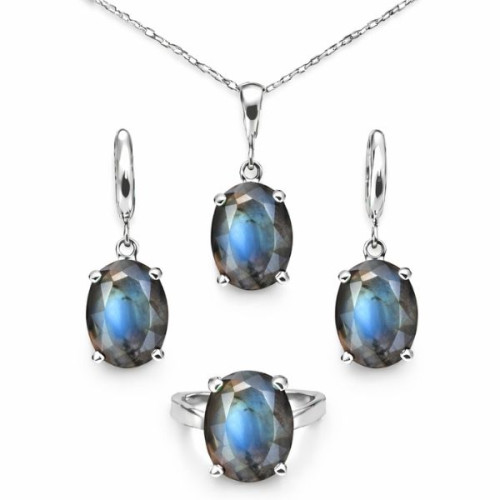 Labradorit taşlı takı seti, güçlü koruyucu etkisi ve sezgileri artıran enerjisi ile en özel doğal taş setlerinden biridir. Aura alanını güçlendirir, negatif enerjilere karşı kalkan oluşturur ve kişinin enerjisini dengede tutar.